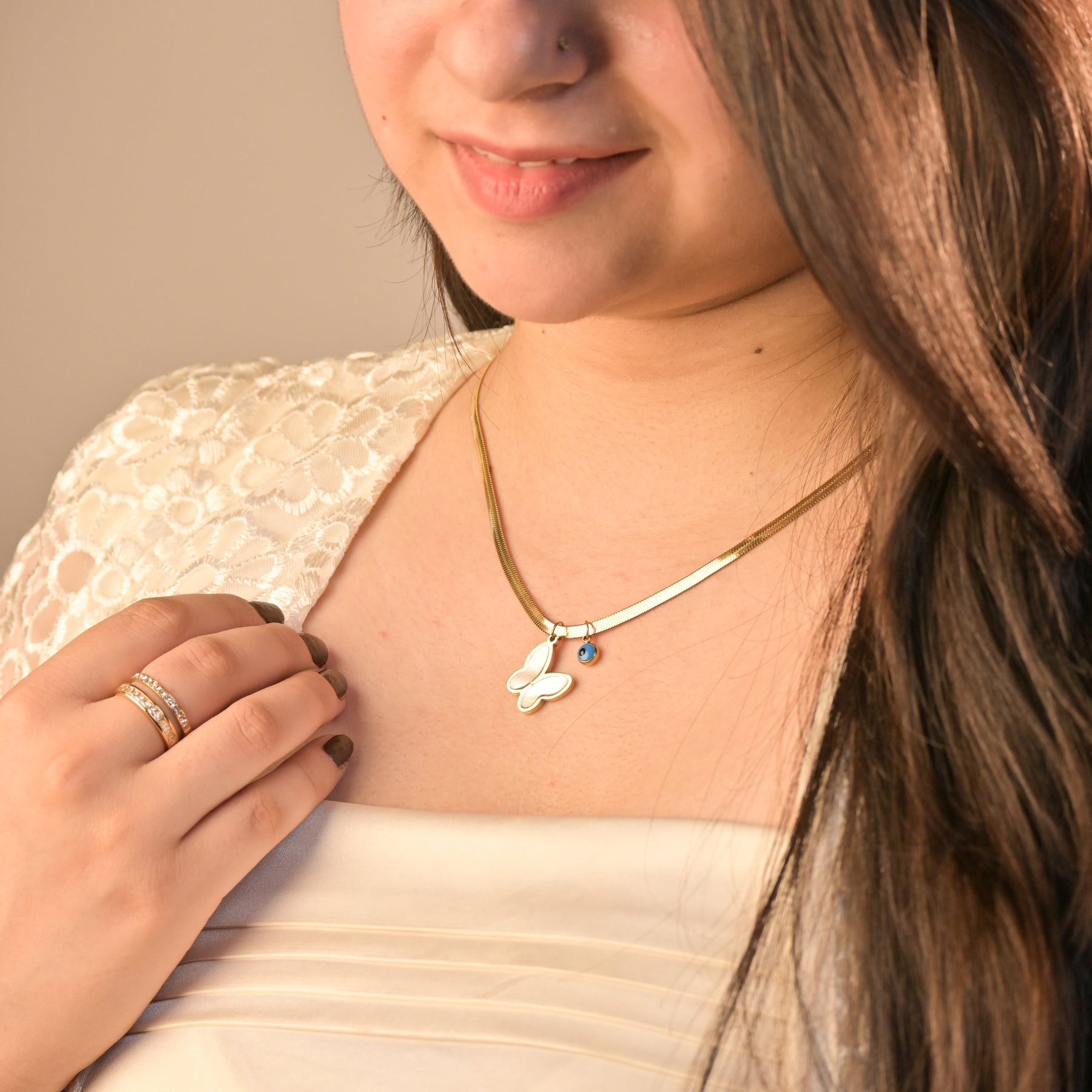 Our jewellery features high-quality plating to resist fading, but proper care is key. Keep it away from water, perfumes, and lotions to maintain its shine and longevity.