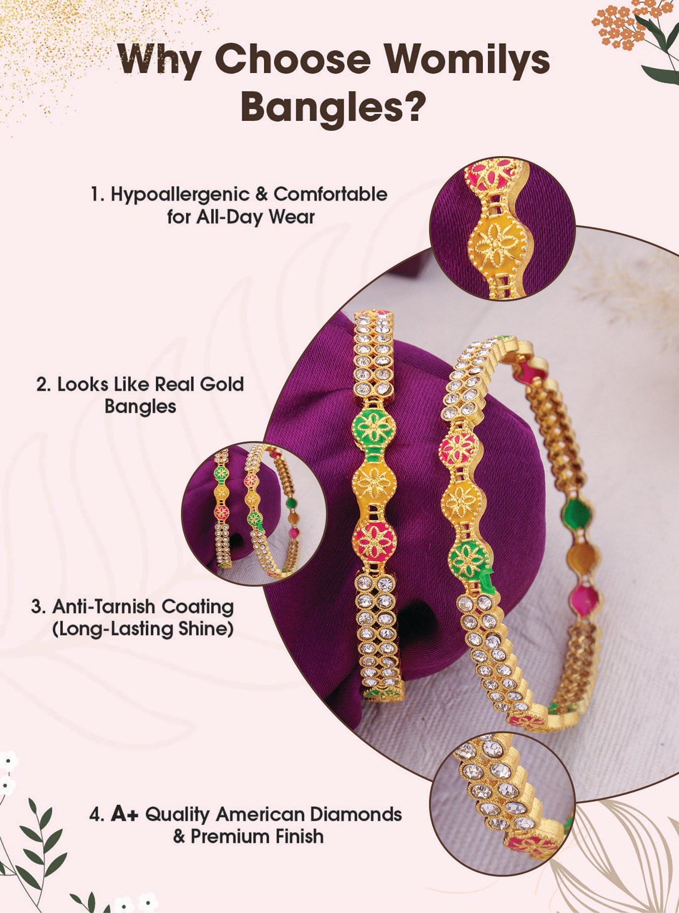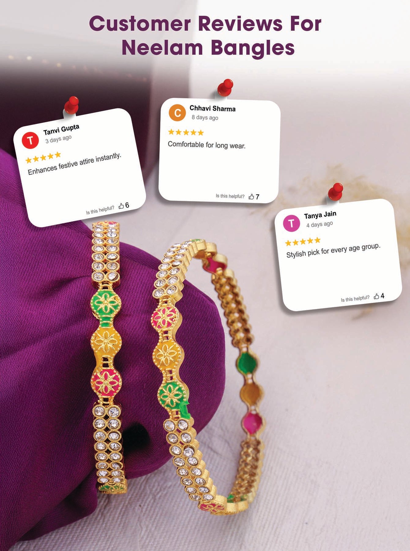 A perfect blend of tradition and trend. Crafted with premium anti-tarnish material and elegant designs, our bangles are made to elevate your everyday look and festive fits. Stylish, durable, and timeless – just like you.