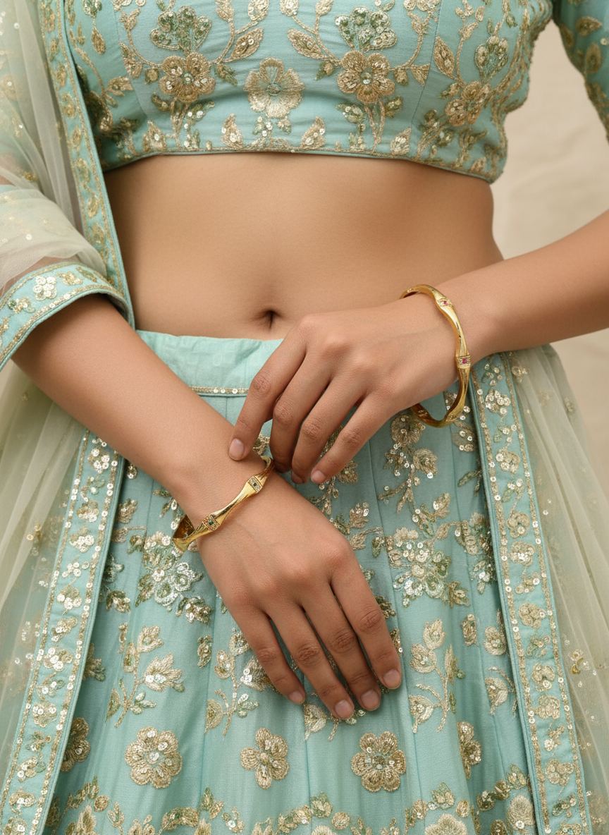 A perfect blend of tradition and trend. Crafted with premium anti-tarnish material and elegant designs, our bangles are made to elevate your everyday look and festive fits. Stylish, durable, and timeless – just like you.