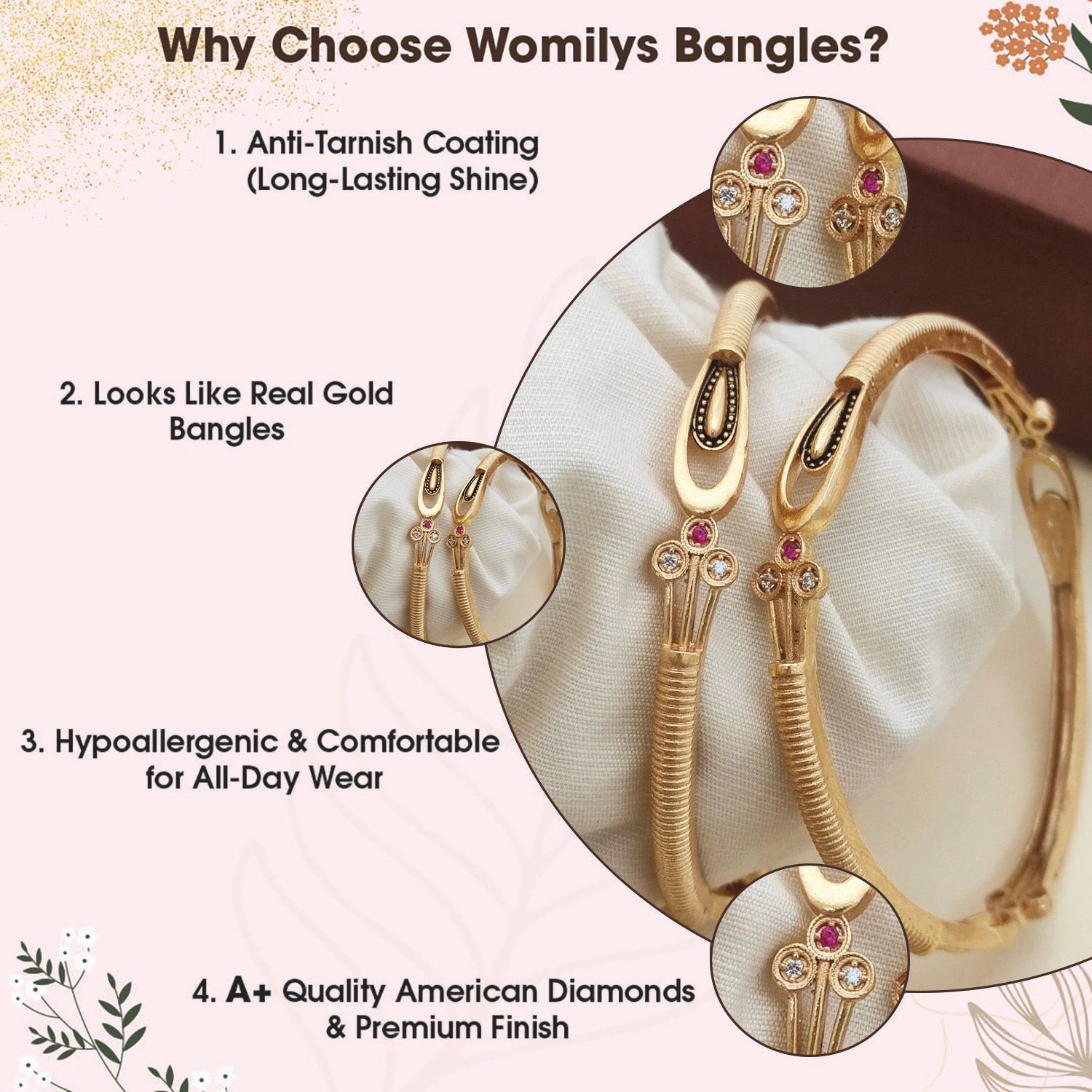 A perfect blend of tradition and trend. Crafted with premium anti-tarnish material and elegant designs, our bangles are made to elevate your everyday look and festive fits. Stylish, durable, and timeless – just like you.