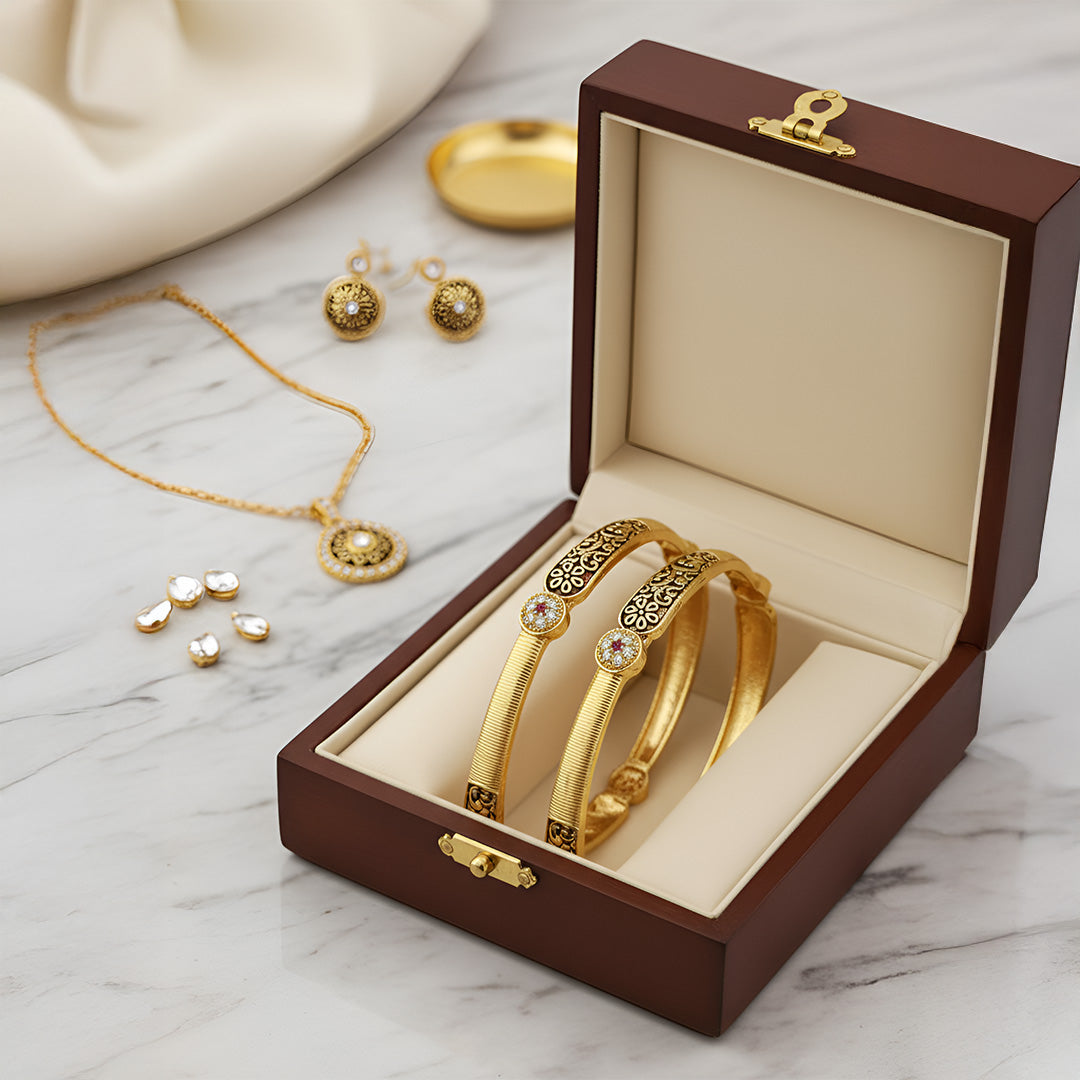 Our jewellery features high-quality plating to resist fading, but proper care is key. Keep it away from water, perfumes, and lotions to maintain its shine and longevity.