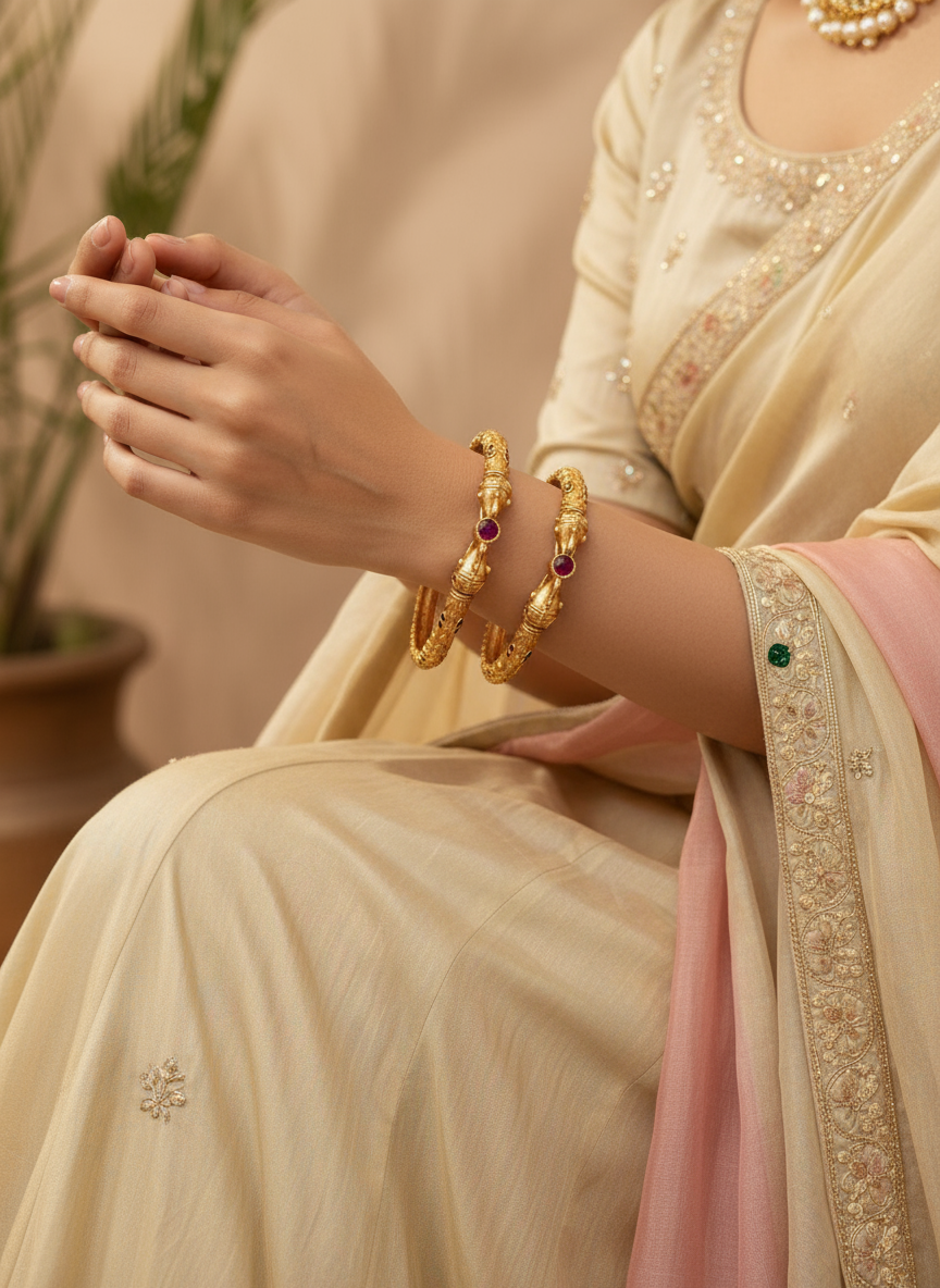 A perfect blend of tradition and trend. Crafted with premium anti-tarnish material and elegant designs, our bangles are made to elevate your everyday look and festive fits. Stylish, durable, and timeless – just like you.