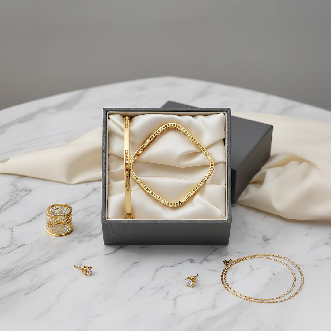 Our jewellery features high-quality plating to resist fading, but proper care is key. Keep it away from water, perfumes, and lotions to maintain its shine and longevity.