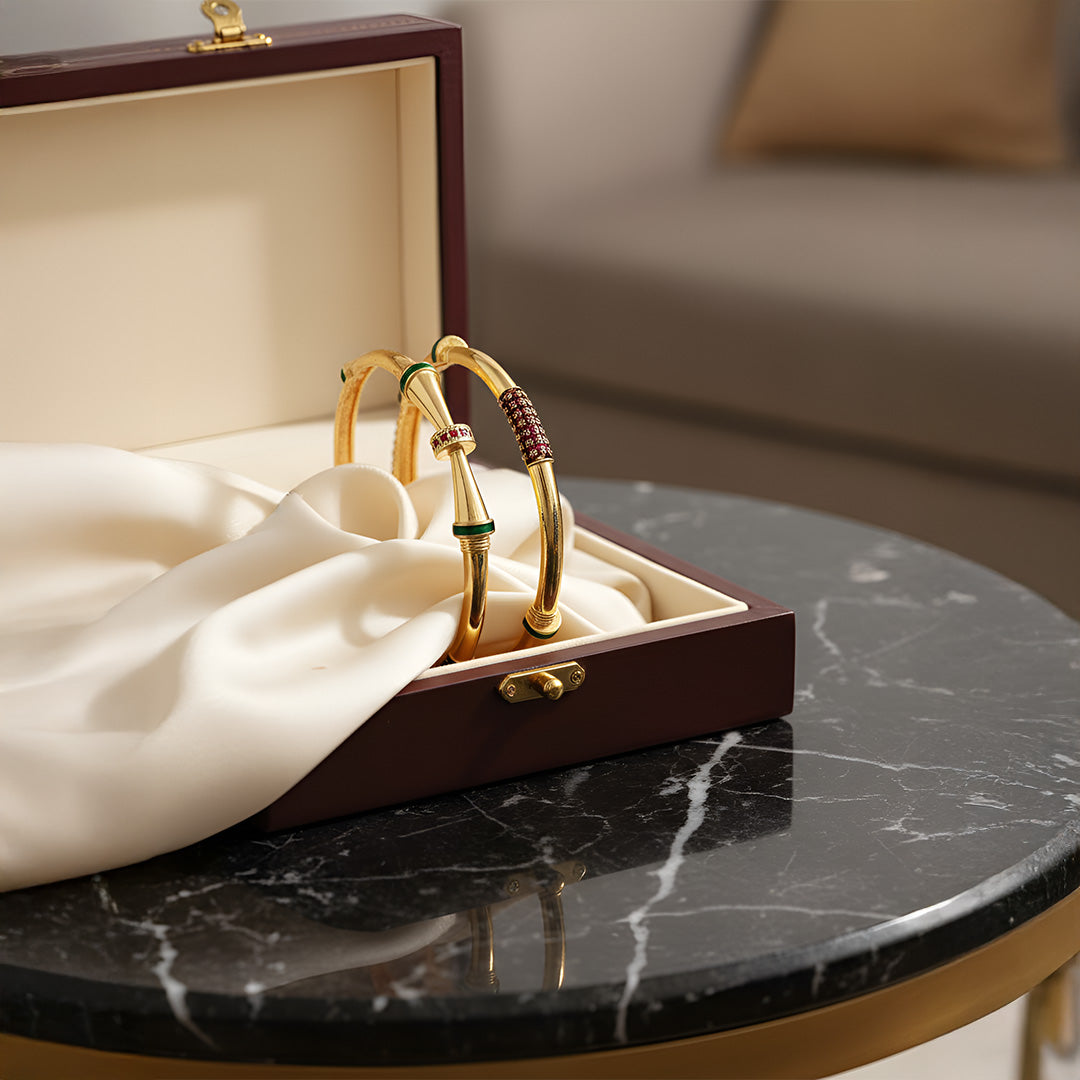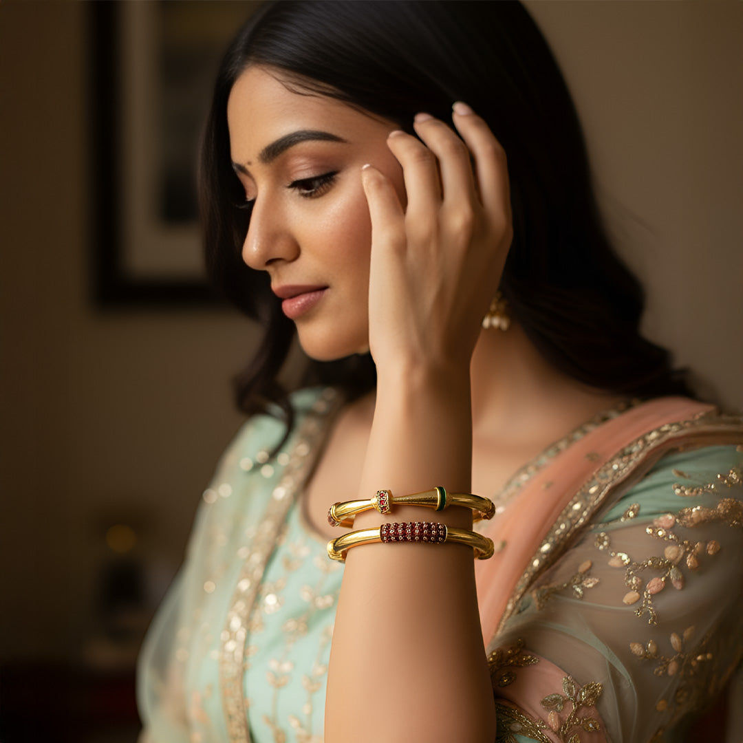 A perfect blend of tradition and trend. Crafted with premium anti-tarnish material and elegant designs, our bangles are made to elevate your everyday look and festive fits. Stylish, durable, and timeless – just like you.