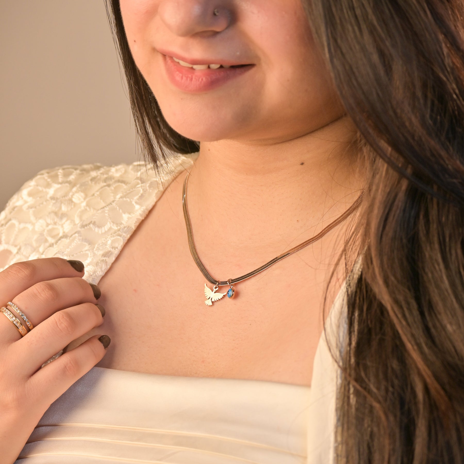 Womily's Flying Bird Anti-Tarnish Coating Chain with Pendant features a finely crafted sterling silver chain, treated with an anti-tarnish coating for enduring brilliance. The pendant depicts a graceful flying bird, intricately detailed and adorned with sparkling accents.