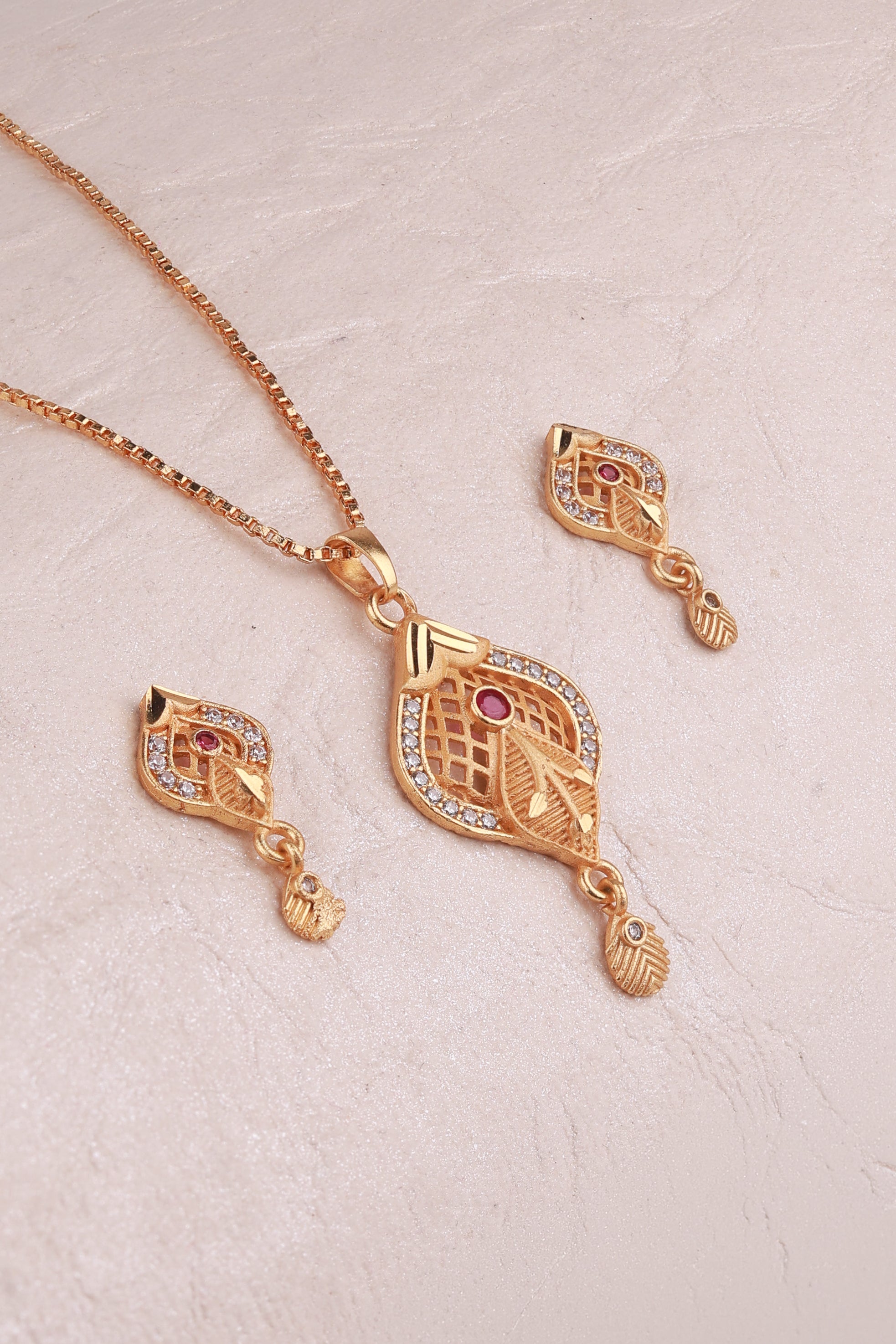 Graceful earrings with a pendant-inspired design, featuring a central gemstone framed by delicate detailing and sparkling accents. Their elegant drop style adds charm and versatility, perfect for festive wear or everyday sophistication.