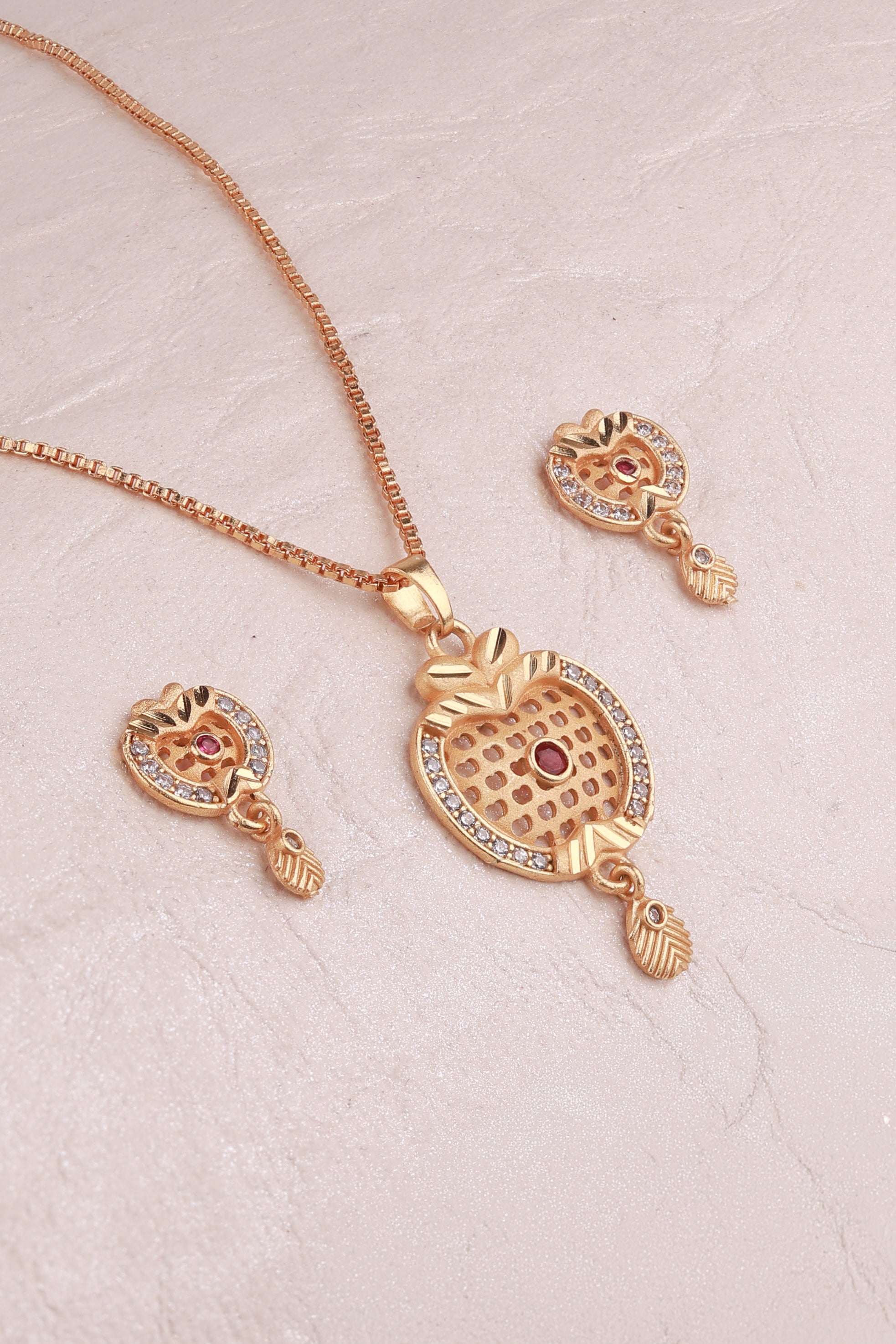 Graceful earrings with a pendant-inspired design, featuring a central gemstone framed by delicate detailing and sparkling accents. Their elegant drop style adds charm and versatility, perfect for festive wear or everyday sophistication.