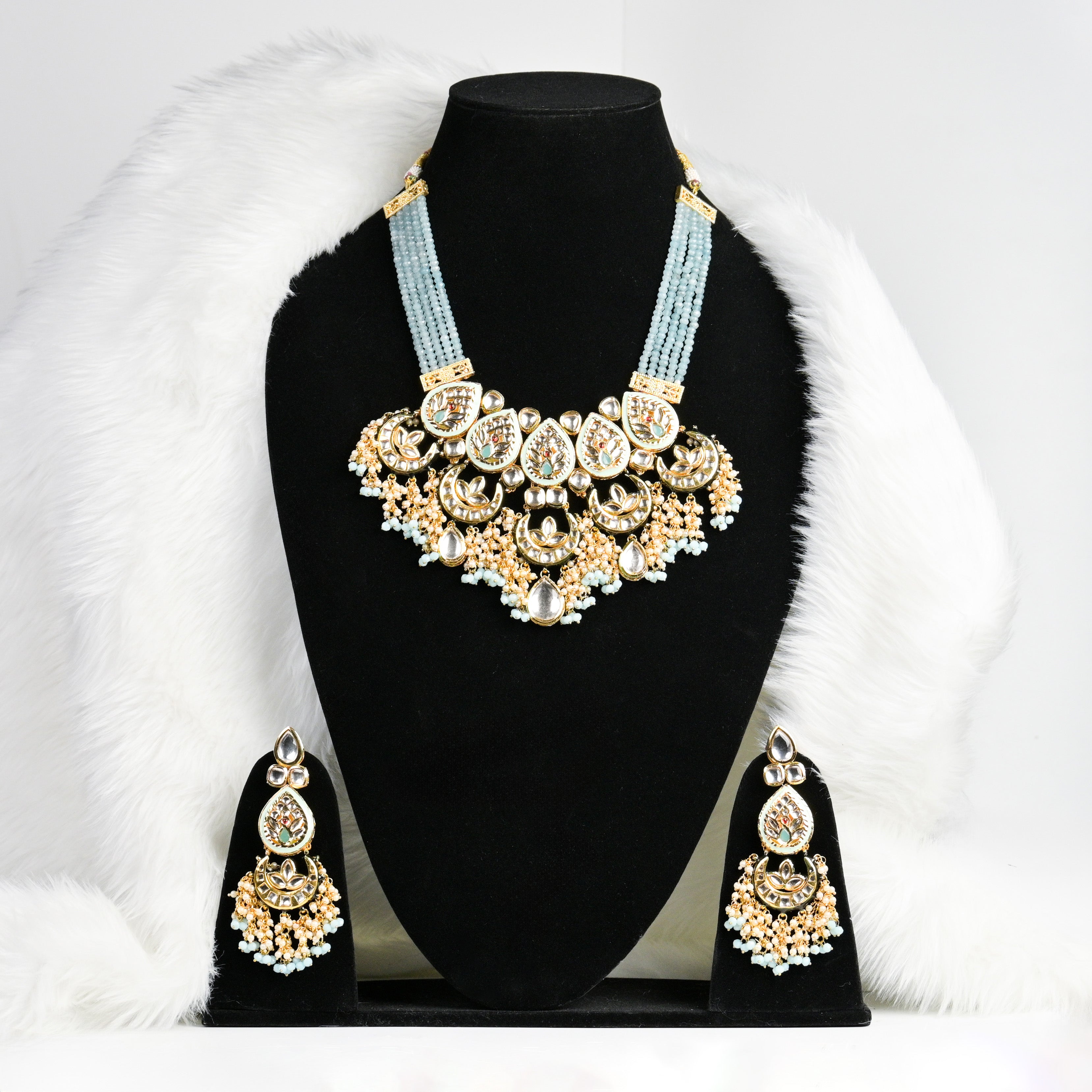 • Rich in Heritage: Adorned with antique finishes and embellishments, the Apsara Necklace Set captures the essence of bygone eras, making it a cherished heirloom for generations to come.