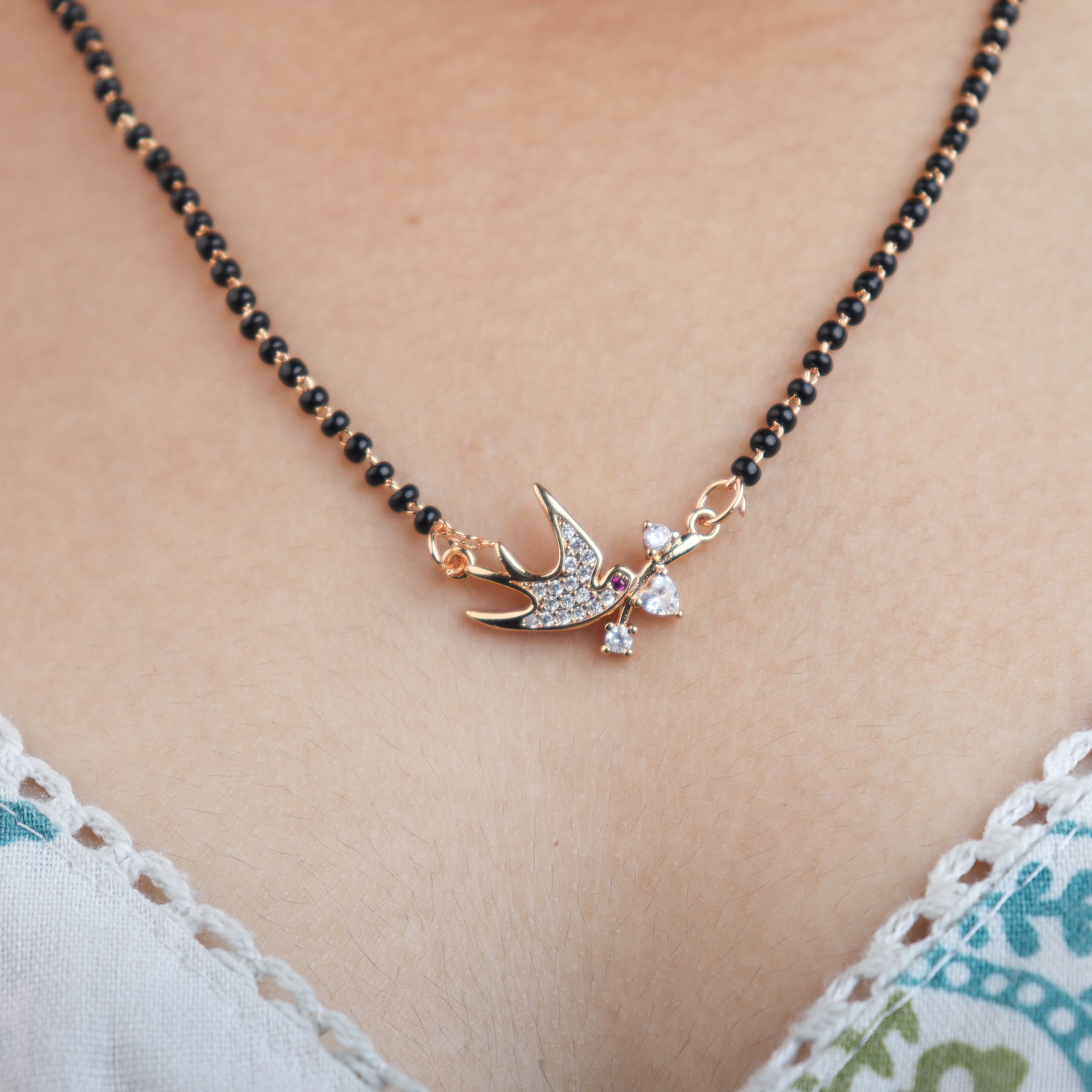 A perfect harmony of heritage and modern charm. Crafted with premium anti-tarnish material and intricate designs, our mangalsutras are made to celebrate love while complementing your everyday style and special occasions. Elegant, durable, and timeless – just like your bond.