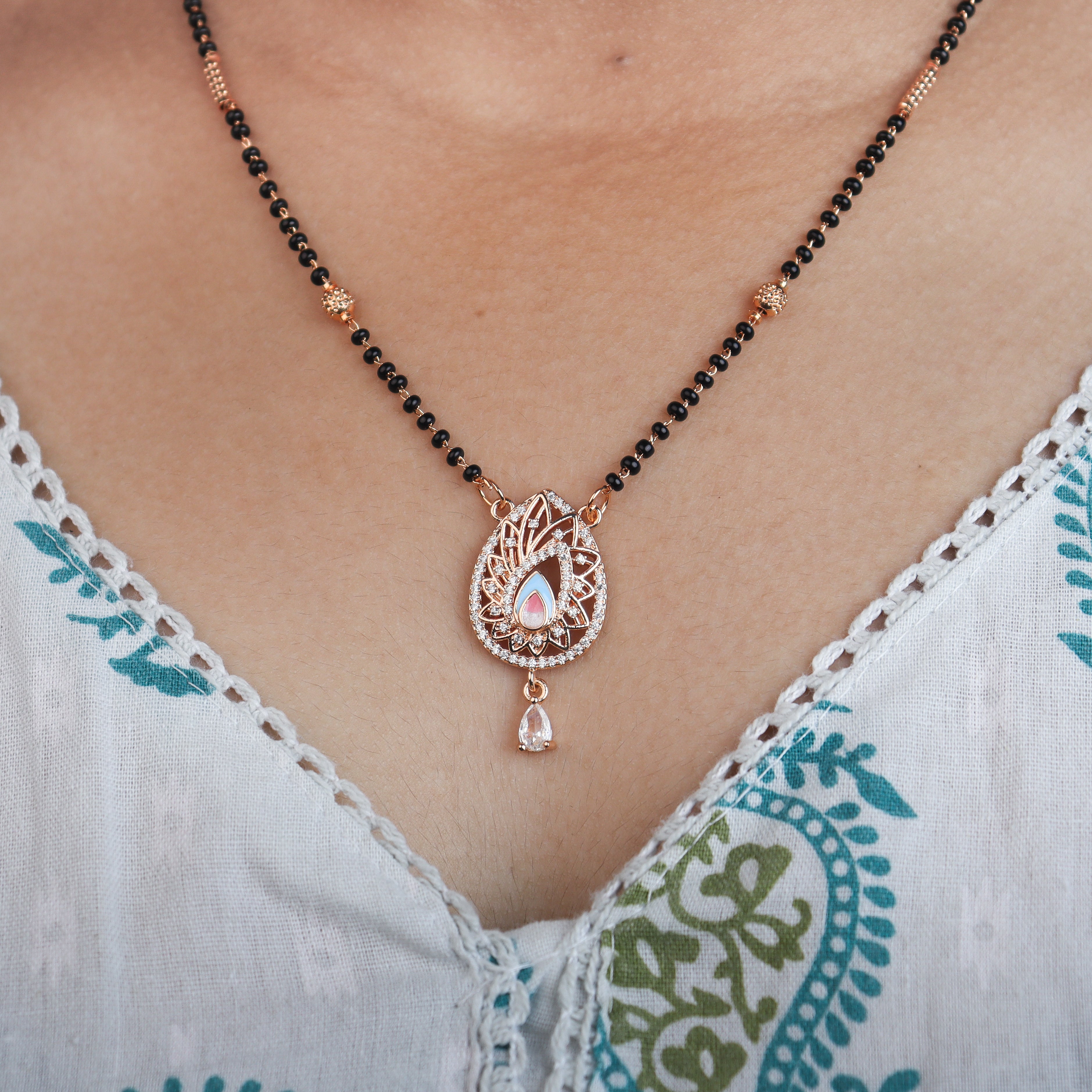 A perfect harmony of heritage and modern charm. Crafted with premium anti-tarnish material and intricate designs, our mangalsutras are made to celebrate love while complementing your everyday style and special occasions. Elegant, durable, and timeless – just like your bond.