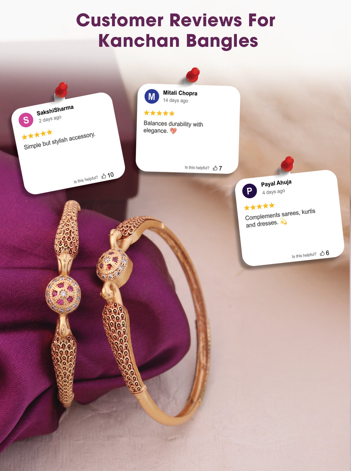 A perfect blend of tradition and trend. Crafted with premium anti-tarnish material and elegant designs, our bangles are made to elevate your everyday look and festive fits. Stylish, durable, and timeless – just like you.