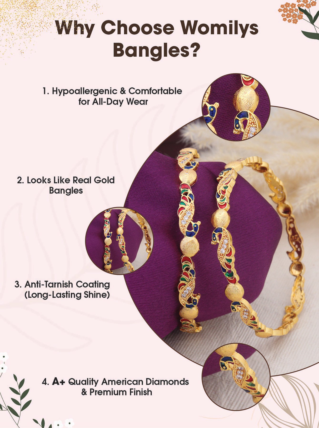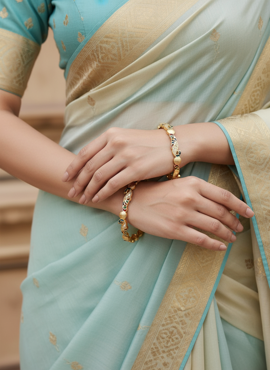 A perfect blend of tradition and trend. Crafted with premium anti-tarnish material and elegant designs, our bangles are made to elevate your everyday look and festive fits. Stylish, durable, and timeless – just like you.