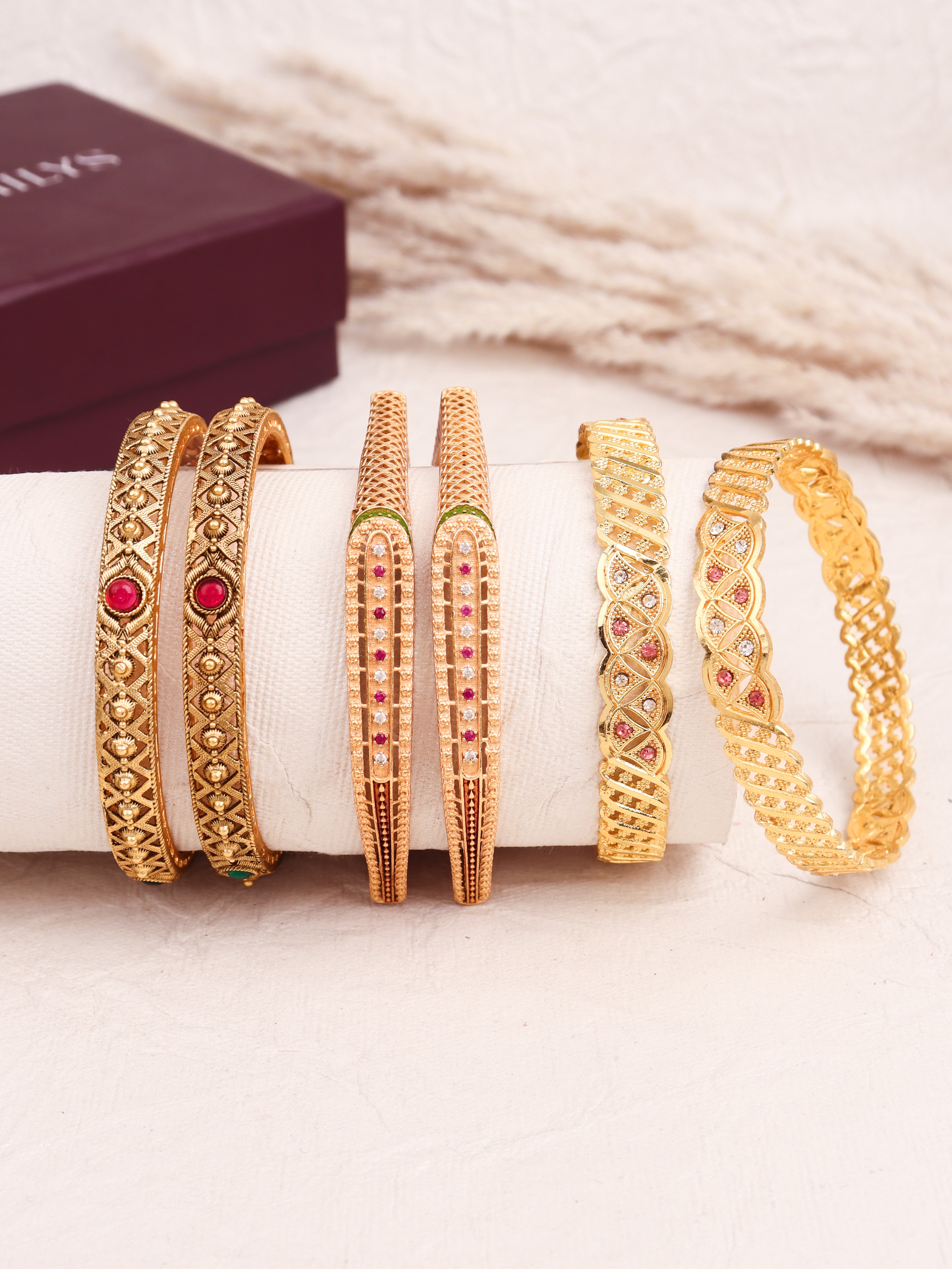 A perfect blend of tradition and trend. Crafted with premium anti-tarnish material and elegant designs, our bangles are made to elevate your everyday look and festive fits. Stylish, durable, and timeless – just like you.