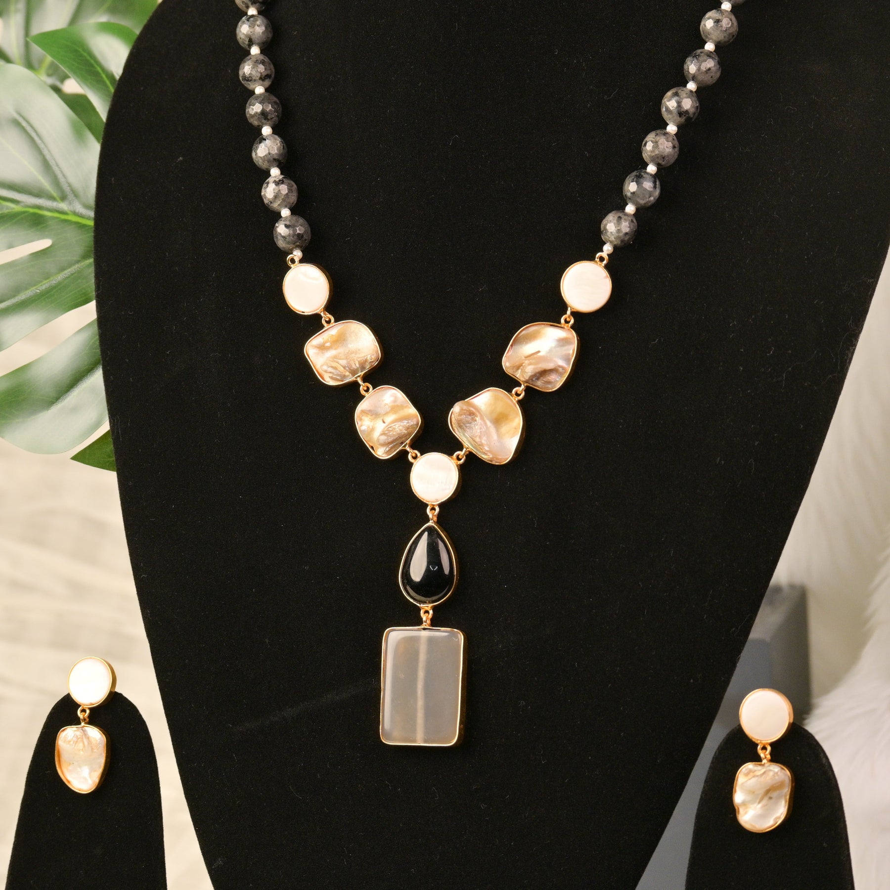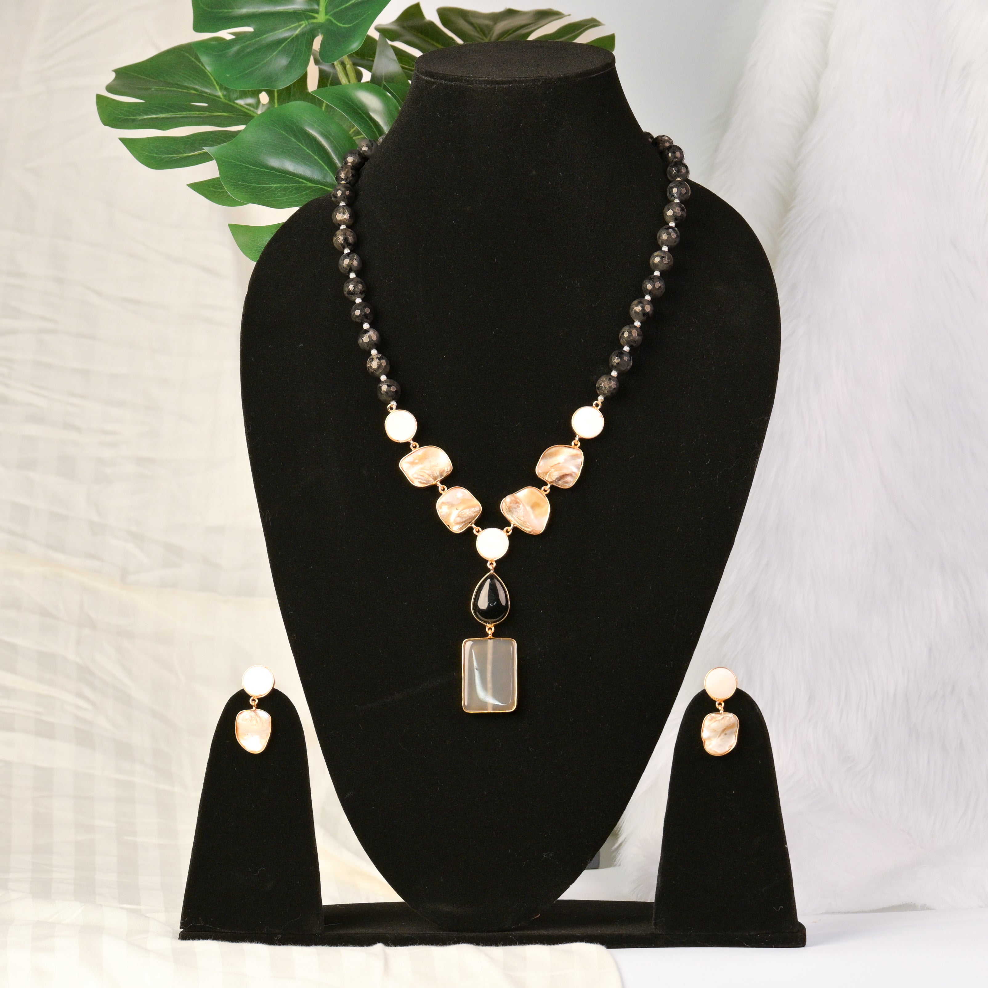 Black Gemstone Stylish Necklace Set