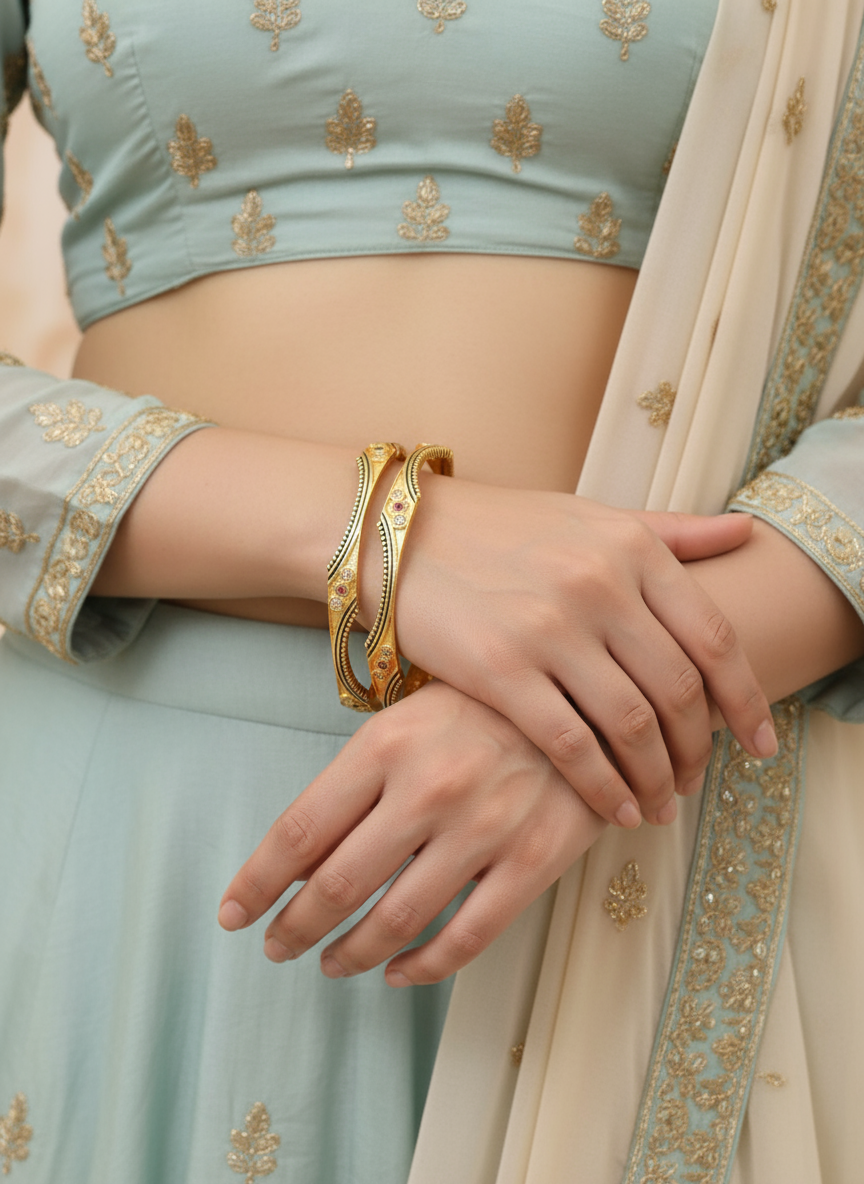A perfect blend of tradition and trend. Crafted with premium anti-tarnish material and elegant designs, our bangles are made to elevate your everyday look and festive fits. Stylish, durable, and timeless – just like you.