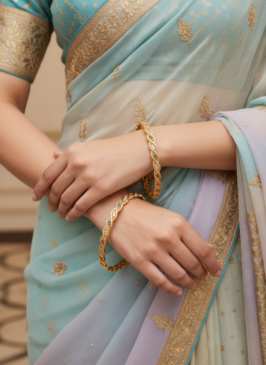 A perfect blend of tradition and trend. Crafted with premium anti-tarnish material and elegant designs, our bangles are made to elevate your everyday look and festive fits. Stylish, durable, and timeless – just like you.