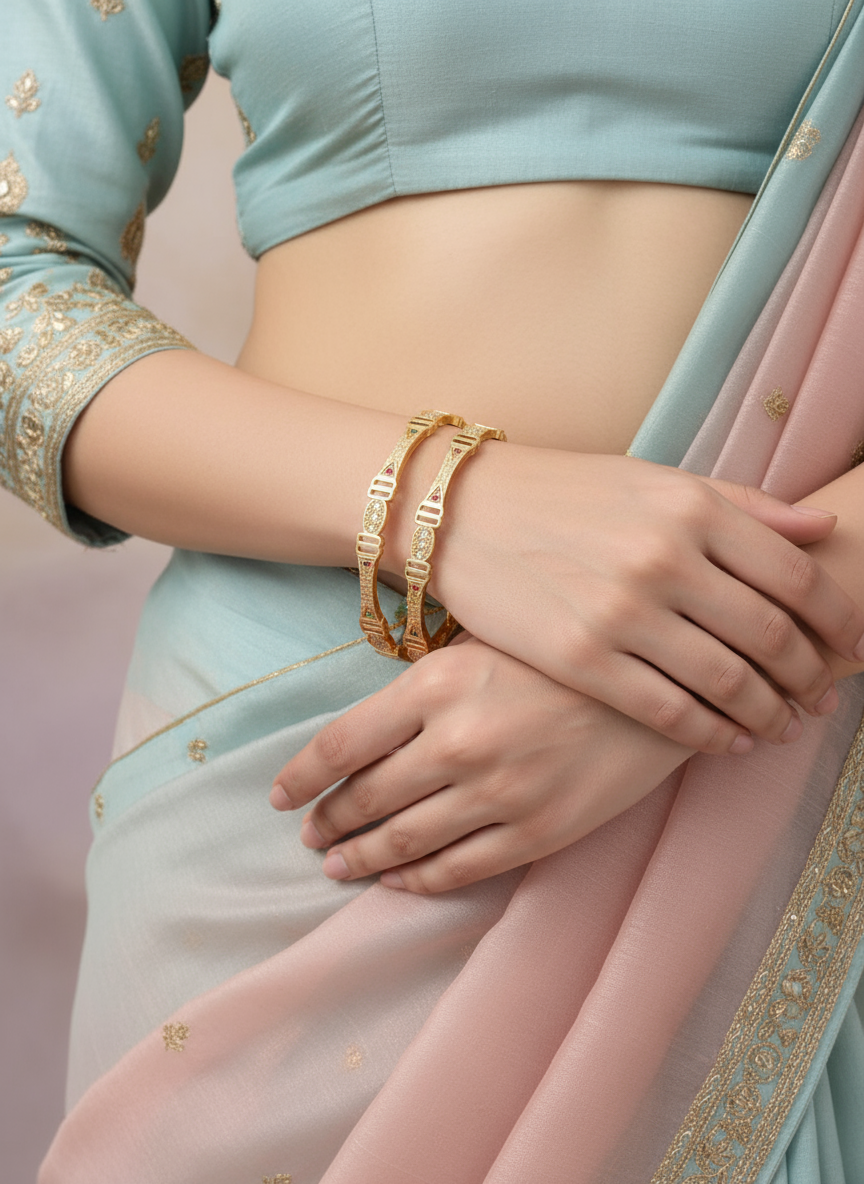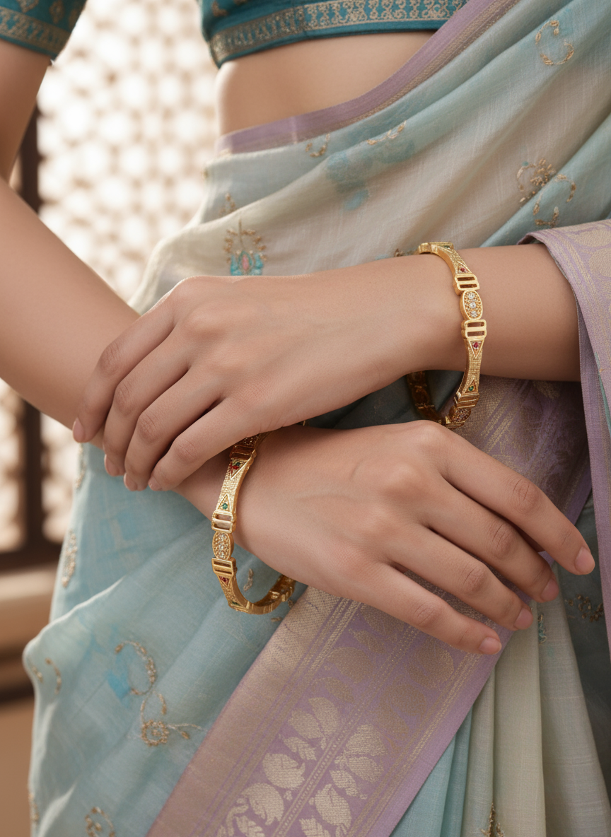 A perfect blend of tradition and trend. Crafted with premium anti-tarnish material and elegant designs, our bangles are made to elevate your everyday look and festive fits. Stylish, durable, and timeless – just like you.