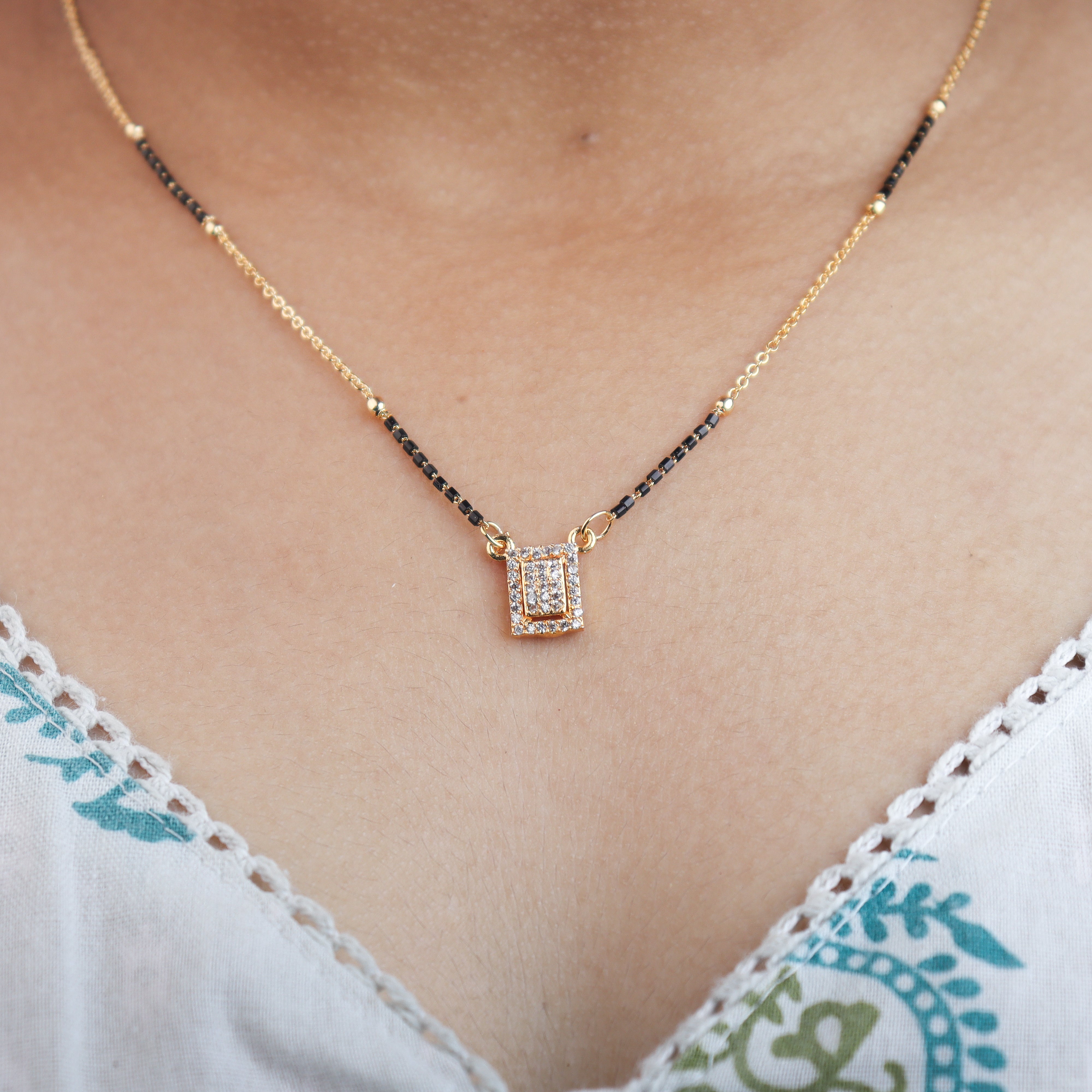 A perfect harmony of heritage and modern charm. Crafted with premium anti-tarnish material and intricate designs, our mangalsutras are made to celebrate love while complementing your everyday style and special occasions. Elegant, durable, and timeless – just like your bond.