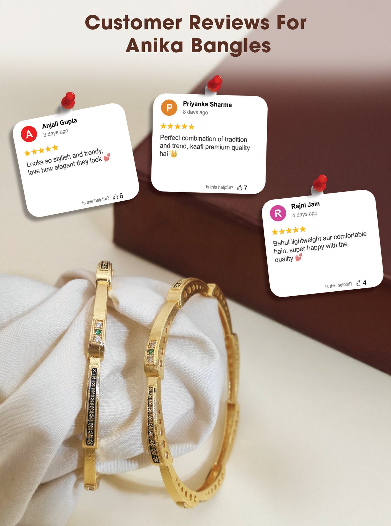 A perfect blend of tradition and trend. Crafted with premium anti-tarnish material and elegant designs, our bangles are made to elevate your everyday look and festive fits. Stylish, durable, and timeless – just like you.