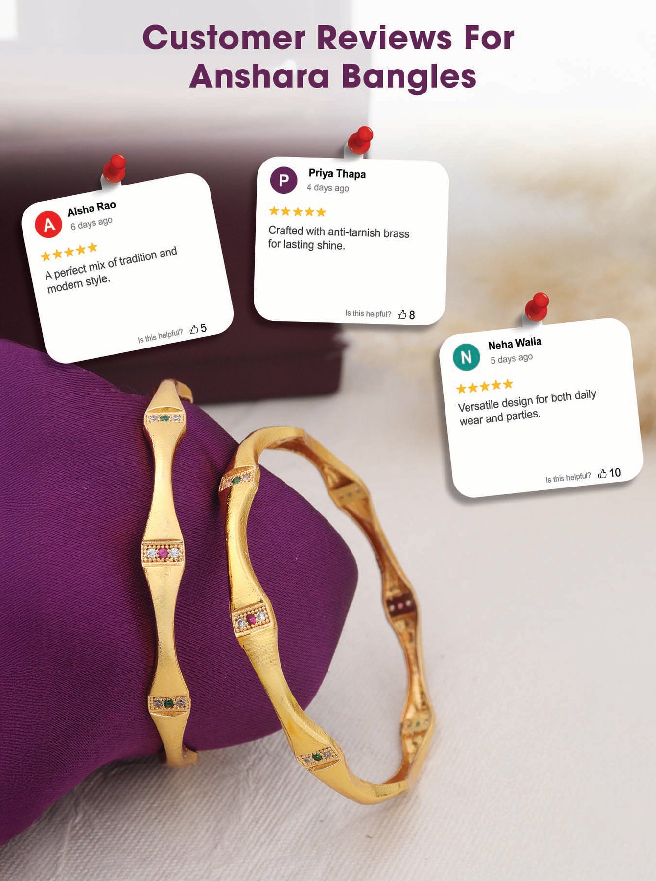 A perfect blend of tradition and trend. Crafted with premium anti-tarnish material and elegant designs, our bangles are made to elevate your everyday look and festive fits. Stylish, durable, and timeless – just like you.
